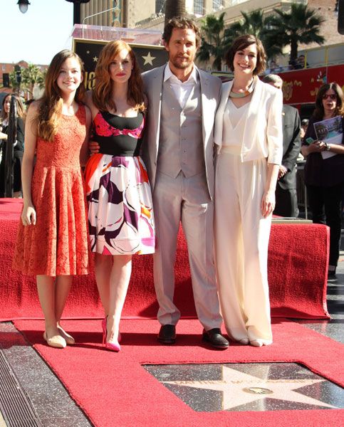 Après avoir remporté l'Oscar du meilleur acteur pour Dallas Buyers Club le comédien américain a inauguré, ce lundi, son étoile sur le célèbre Hollywood walk of Fame. Entouré de sa famille, du producteur de ses débuts Don Phillips, de Christopher Nolan et des comédiennes d'Interstellar : Mackenzie Foy (Murphy jeune dans le film), Anne Hathaway et Jessica Chastain, Matthew McConaughey a découvert son étoile, située devant le musée de cire de Madame Tussauds.