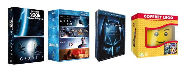 - Les Blu-Ray™ 3D, qui regroupe le coffret Godzilla / Pacific Rim / 300 : la naissance d'un empire, le coffret Gravity / Gatsby Le Magnifique ou encore le coffret Découvertes Nouveautés comprenant les films Gravity, Pacific Rim, Man Of Steel et Godzilla.