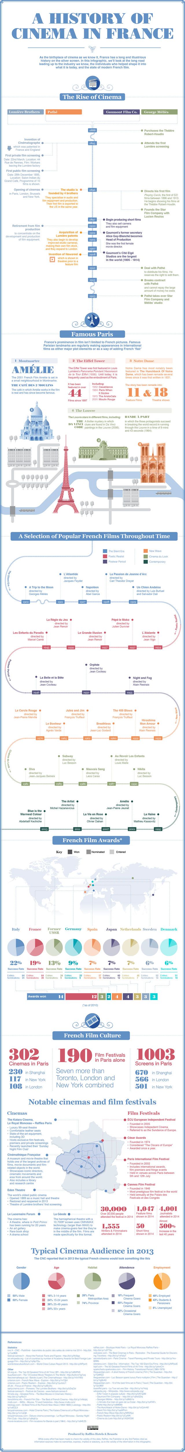 Quelles ont été les grandes étapes de la naissance du cinéma ? Combien de versions existe-t-il de Notre-Dame de Paris ? Quels sont les films marquants qui ont vu le jour dans l'Hexagone ? Toutes ces questions, et plus encore, une infographie très riche y répond aujourd'hui. Un document très complet dans lequel on retrouve également les récompenses reçues, la liste des salles les plus célèbres et la répartition des spectateurs par sexe, âge ou emploi. Un outil indispendable pour qui veut être incollable sur le sujet donc, et à voir en plus grand à cette adresse.