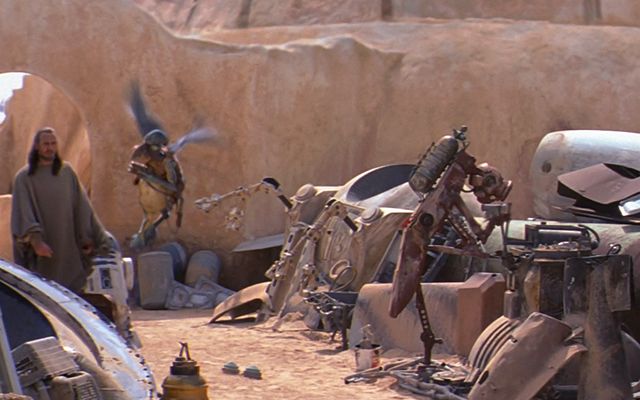 Dans La Menace Fantôme, quand Qui-Gon Jinn visite le magasin de Watto sur Tatooïne.