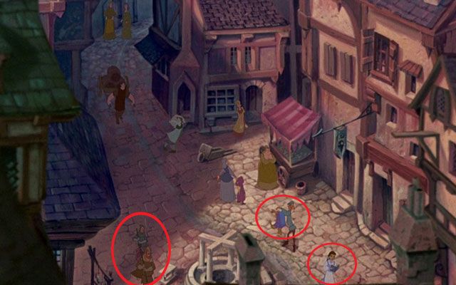 A gauche, deux hommes portent un sanglier à la broche qui n’est autre que… Pumbaa (pour mieux vous en rendre compte, on vous conseille de visionner l’extrait en entier). Sur le côté droit, un autre homme secoue un tapis : le même que celui d’Aladdin. Enfin, encore plus à droite, on peut apercevoir Belle marcher avec un livre à la main : rien de très étonnant puisque La Belle et la Bête se déroule également en France.