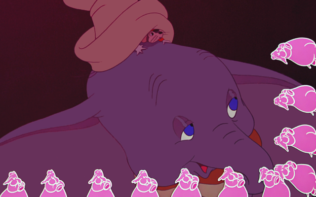Pour réconforter le petit éléphant, la souris Timothée lui fait boire un seau d’eau, qui s’avère être rempli de champagne. Mais étant donné le trip dans lequel s’apprête à partir Dumbo, on les soupçonne fort d’avoir consommé d’autres substances.