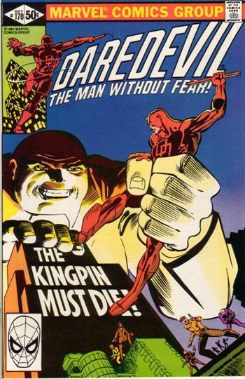 Si le personnage fait sa première apparition dans Amazing Spider Man n°50, c'est dans le n°170 de la publication Daredevil qu'il est confronté au justicier aveugle. Ci-dessous, la couverture du numéro en question. Le dessin est signé Frank Miller.