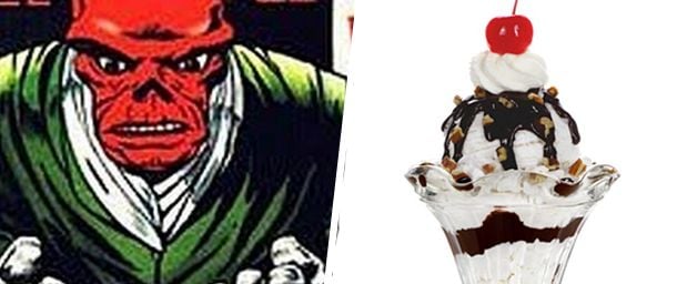 Le public américain découvre pour la première fois le personnage de Crâne rouge en décembre 1940. Créé par le scénariste Ed Herron et Joe simon, encré par Jack Kirby, ce personnage est un des ennemis mortels de Captain America. L'origine de sa création est assez étonnante. Joe Simon la raconte dans son autobiographie, My Life in Comics. "J'avais un gros Sundae posé devant moi, avec de la glace à la vanille qui coulait sur le côté. C'était intriguant. On aurait dit que le Sundae possédait des bras, des pieds et des jambes. Je me suis alors dit que ca ferait un méchant intéressant. Qu'on aurait qu'à l'appeler "Sundae", en lui mettant un visage et en le faisant suer de partout. Puis j'ai regardé à nouveau le Sundae, et j'ai remarqué une grosse cerise posée tout en haut, qui ressemblait à un crâne. Je me suis dit : "Crâne rouge...C'est un nom qui sonne bien !"