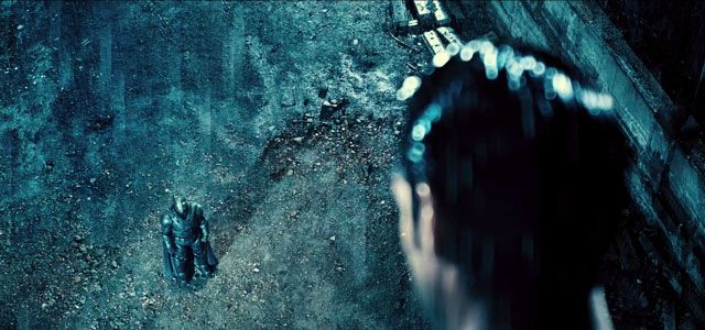 Une autre voix surgit également, celle de Jeremy Irons, alias le majordome Alfred, qui explique que les meilleurs hommes qui soient se changent en individus cruels lorsqu’ils ont un sentiment d’impuissance. Le tout sur des images de Bruce Wayne contemplant son costume de justicier masqué. On sent que Snyder sait qu'il doit tenir le public en haleine encore des mois, et a simplement choisi de placer des plans dédiés aux fans, comme celui-ci par exemple :