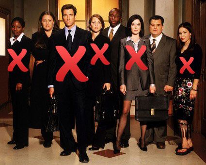 Dans le cas de The Practice, les coupes vont être sanglantes : ce ne sont pas 1, 2 ou 3 acteurs qui sont priés de prendre la porte... mais 6 d'un coup ! Ils sont remplacés par une tête d'affiche (James Spader, qui prendra ensuite les rênes du spin-off, Boston Justice) et par quelques seconds rôles bien choisis (Ron Livingston, Rhona Mitra...) Un "T'es viré" collectif !