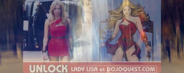 Bonus - Impatients de découvrir Pixels ? Nostalgiques d'une petite partie d'arcade ? Rendez-vous sur DojoQuest.com, un site viral qui vous dévoile une appli gratuite inspirée par le film et porté par la comédienne Ashley Benson (Spring Breakers) dans le costume de la sexy et fatale Lady Lisa.