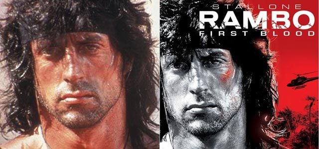 Seulement voilà : le Rambo que les spectateurs connaissent le mieux, celui qui est passé à la télé le plus souvent, c’est celui qui porte les cheveux plus longs et qui tire des flèches explosives. C'est pourquoi, sur le poster de 2015, le photogramme a été emprunté non pas à Rambo, le film où Sylvester Stallone tente de résister à la police américaine en prenant le maquis, mais à Rambo II : la mission, où Sylvester Stallone retourne au Viêt-Nam pour libérer des soldats prisonniers de guerre ! Constatez par vous-mêmes.