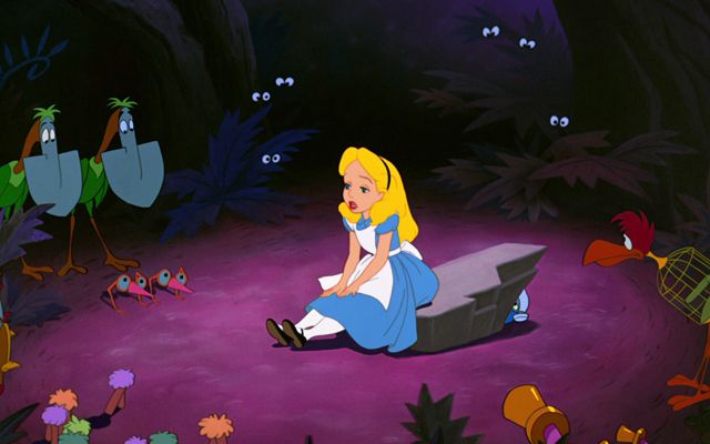 C'est bien connu, l'adaptation du célèbre conte de Lewis Carroll par les studios Disney n'est en réalité qu'un gigantesque rêve dans lequel plonge la petite Alice lorsque sa grande sœur se met en devoir de lui faire apprendre sa leçon d'histoire. Les longues tirades sans intérêt de cette dernière s'évanouissent bien vite au profit d'un lapin blanc très en retard, et le rêve peut commencer.