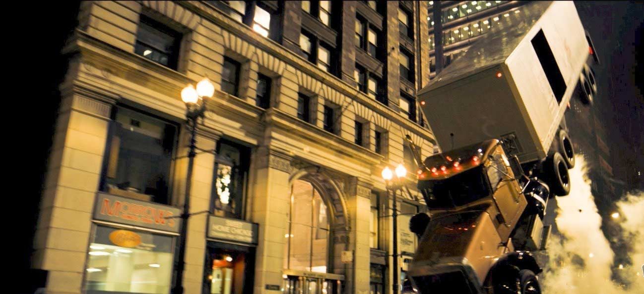 Ceux qui ont vu The Dark Knight s'en souviennent forcément : la très impressionnante cascade du poids lourd qui se retourne comme une crêpe dans une rue de Chicago, d'ailleurs visible en partie dès la toute première bande-annonce du film. Une ahurissante séquence supervisée par Paul Jennings, un des meilleurs coordinateurs de cascades en activité.