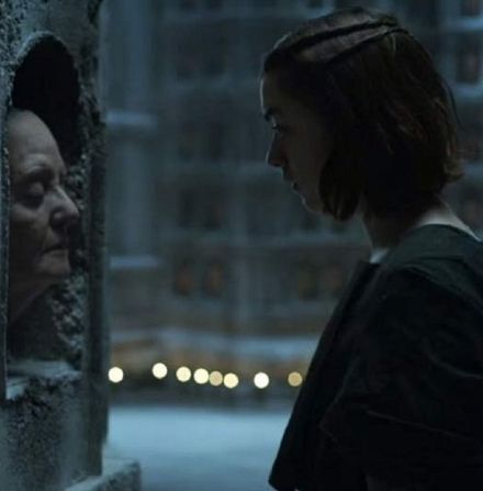 Décidément toujours aussi facétieux, les visages des producteurs David Benioff et D.B. Weiss figurent parmi les visages de la salle. Mais dans une brève séquence, Arya Stark touche le visage d'une femme. Voici l'image :