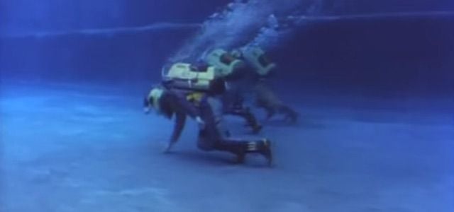 Pour atteindre le puits de plongée où s'est réfugié le lieutenant Coffey (Michael Biehn) et l'empêcher d'envoyer une tête nucléaire vers les habitants des abysses, Virgil 'Bud' Brigman (Ed Harris) et Catfish (Leo Burmester) plongent dans l'eau noire et glacée. Privés de combinaison et donc d'oxygène, ils nagent en apnée le long des parois de la station Deepcore, en espérant atteindre leur objectif après de longues, très longues brasses...