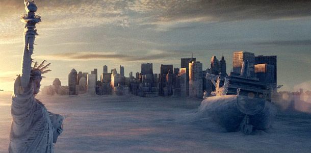 Dans Le Jour d'après, un changement climatique imprévu et violent à l'échelle mondiale entraîne à travers toute la planète de gigantesques ravages : inondations, grêle, tornades et températures d'une magnitude inédite. Jusqu'à l'arrivée d'une nouvelle période glaciaire...De là une vision apocalyptique de la ville de New York, littéralement prise sous les glaces.