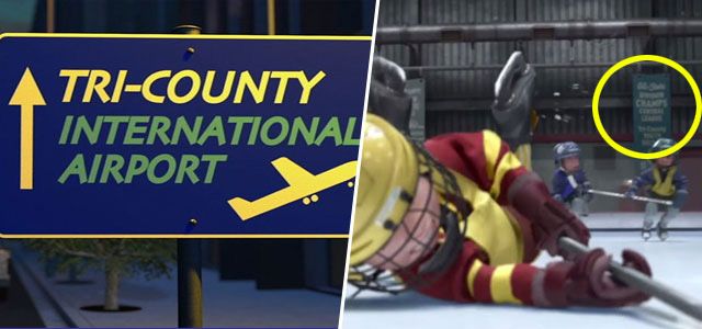 Depuis qu'elle a déménagé à San Francisco avec ses parents, la petite Riley n'habite plus très loin de la famille d'Andy, propriétaire des jouets de Toy Story. En effet, lors de son premier entrainement de hockey, on peut apercevoir accrochée au mur une banderole mentionnant la ville de Tri-County : une localité californienne fictive où se déroulent Toy Story 2 et 3, comme peut en témoigner le panneau de l'aéroport ci-dessus.