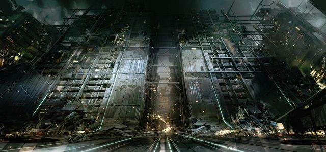Par comparaison avec le "Golden Age" du jeu précédent, ici on fait un retour à une période sombre, un "Dark Age", comme une sorte de période médiévale. On appelle ça chez nous le "féodalisme corporatif". On a des perspectives et des lignes qui sont du domaine du Brutalisme [NDR : Le brutalisme désigne un style architectural d'origine anglo-saxonne qui est issu du modernisme. Il connut une grande considération entre les années 1950 et 1970, avant de devenir impopulaire : c'est sous ce nom que l'on rassembla toutes les constructions dures et imposantes en béton], on a des bâtiments qui ressemblent à des forteresses. Les tons sont plus gris, plus blanc et bleu, les lignes sont plus épurées aussi. Les codes visuels épousent la narration; j'ai par exemple en tête Golem City, le gigantesque ghetto dans lequel vivent les augmentés et les laissés pour compte. C'est un environnement dans lequel on retrouve ce mélange entre le progrès ou l'âge d'or, et la régression.