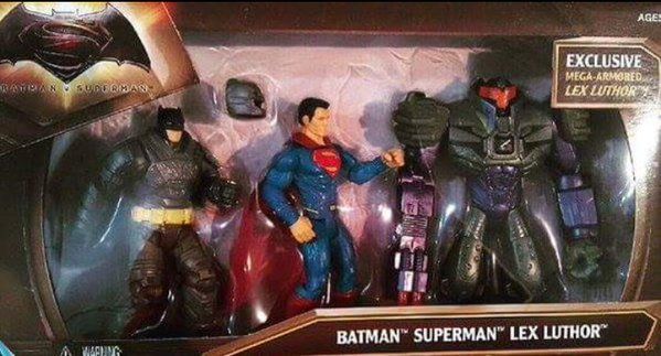En attendant, la photo d'un jouet donne aujourd'hui un peu plus de crédit à un bruit de couloir autour de Lex Luthor : aux côtés de Batman et de Superman, on découvre en effet une super-armure. Celle que le personnage incarné par Jesse Eisenberg pourrait utiliser pour se mêler à la lutte.