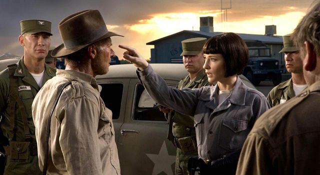 Guerre Froide oblige, les soldats nazis qui avaient coutume d'affronter Indy ont laissé la place à des troupes soviétiques, menées par la terrible docteur-colonel Irina Spalko (Cate Blanchett). Après l'Arche d'Alliance et le Graal, c'est pour des crânes de cristal d'origine extra-terrestre que s'affrontent ici les personnages.