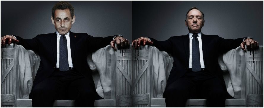 La série politique Netflix a trouvé sa place dans la pop culture française au point d'être l’objet de détournements en série sur internet et dans la presse. En 2014, Nicolas Sarkozy faisait la Une du Nouvel Observateur, assis sur le trône de Frank Underwood (prenant lui-même la place d’Abraham Lincoln), les mains en sang. Le message est plutôt clair.
