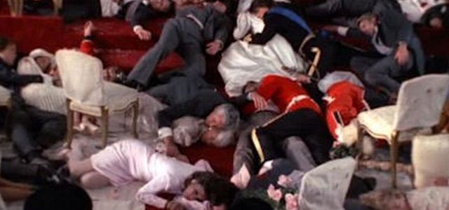 Famille et amis se rendent en Moldavie pour assister au mariage d'Amanda, la fille d'Alexis et Blake Carrington. Celle-ci s'apprête à épouser le Prince Michael, héritier du Royaume. La cérémonie est interrompue avec armes et fracas par l'arrivée de révolutionnaires qui veulent renverser le pouvoir. Les festivités se transforment en véritable tuerie. Et la dernière scène montre tous les invités inconscients dans un bain de sang... Un cliffhanger de fou, pour lequel l'Amérique tout entière a retenu son souffle !