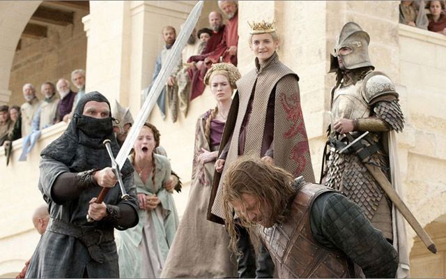 Alors que le décor est correctement planté, qu’on commence à saisir qui est qui et les liens qui unissent les personnages ou les éléments qui les opposent, on a le sentiment que Ned Stark est le héros du show (Sean Bean en nice guy droit dans ses bottes oblige)... Sauf qu’en fait, NON. En effet, c’est à la fin de l’épisode 9 de la première saison que Joffrey Baratheon, cet ado charmant, décide de faire décapiter le bon Eddard comme ça, parce qu’il en a le pouvoir. Sous les yeux de Sansa (et d’Arya qui se trouve dans la foule), évidemment, sinon c’est beaucoup moins drôle et beaucoup moins sadique.