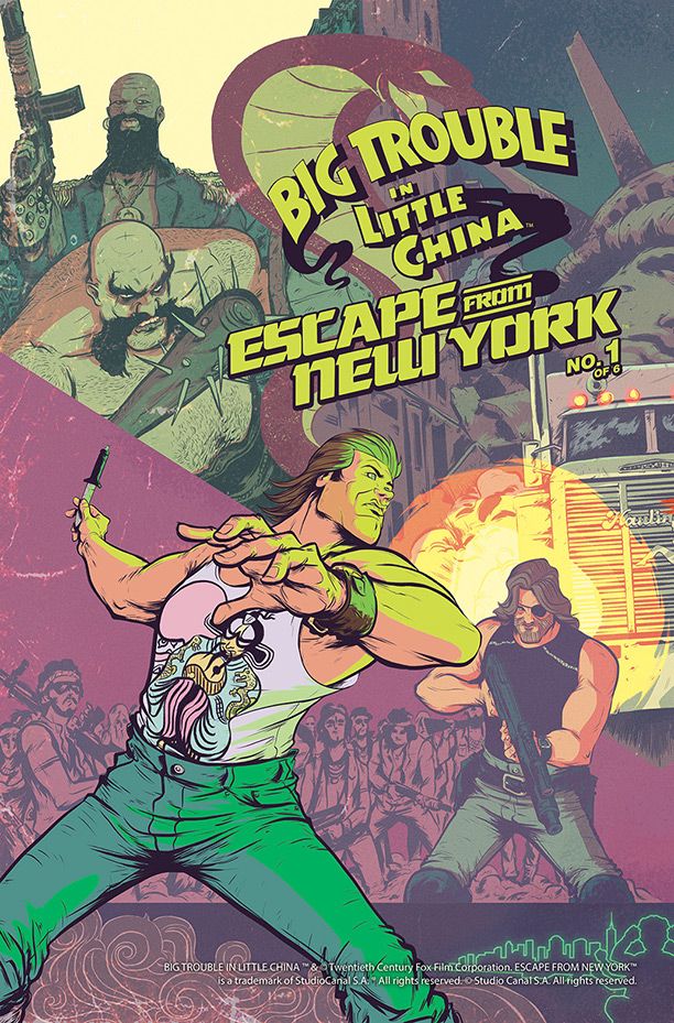 Et si le Jack Burton des Griffes du Mandarin croisait le Snake Plissken de New York 1997 ? Cela donnerait ce que le comics Big Trouble in Little China / Escape from New York a imaginé, pour l'éditeur BOOM! Studios. Dans une mini-collection de 6 titres, ce comics présente les aventures de l'aventuriers Jack Burton aux prises avec son sosie, le borgne Snake Plissken.