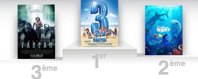 Sur la 3ème marche, une nouveauté : Tarzan qui fédère presque 500 000 curieux. Autre nouveauté à se faire une place dans le Top 5 : la comédie US Nos pires voisins 2 avec Zac Efron et Seth Rogen (217 611 entrées). Entre les deux, Conjuring 2 enregistre à nouveau une belle semaine en s'offrant la meilleure moyenne copie de la semaine et cumulant 288 119 billets supplémentaires vendus, soit un total au-delà du million d'entrées à l'issue de deux semaines d'exploitation.
