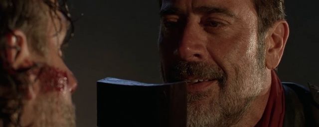 Et les premières minutes offrent un premier face à face intense entre Andrew Lincoln et Jeffrey Dean Morgan... et déjà un cliffhanger qui voit Negan entraîner Rick dans sa caravane, après avoir récupéré sa hache et évoqué l'importance d'avoir un "bras droit" dans un dialogue à double-sens aussi savoureux que terrifiant. Faut-il y voir la mutilation du héros tant attendue par les fans, survenue dans les comics via le Gouverneur ?