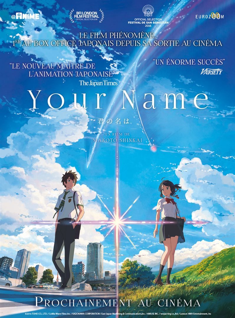 Avant de débarquer dans nos salles françaises le 28 décembre grâce au distributeur Eurozoom, Your Name est en train de littéralement battre des records au Japon. En effet, le film d'animation a déjà réuni plus de 10 millions de spectateurs, devenant le 5ème plus gros succès de tous les temps derrière Le Voyage de Chihiro, Le Château ambulant, Princesse Mononoke et Ponyo sur la falaise. À noter que Your Name est aussi devenu le premier long-métrage d'animation non Ghibli à dépasser la barre symbolique des 10 milliards de Yens de recettes, s'offrant même le luxe de surclasser des mastodontes comme Zootopie ou Le Monde de Dory.