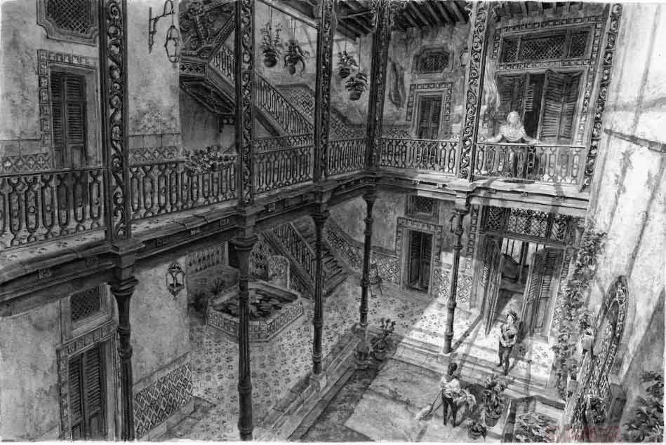 L’idée derrière Karnaca, c’est un peu de faire un voyage dans une sorte de Far West, une ville du bout du monde. Les gens y viennent pour faire de l’argent, comme les orpailleurs. Mais une fois sur place, ils n’en gagnent pas tant que ça, finissent par ne plus avoir d’argent du tout et ne peuvent donc plus quitter les lieux. Il peut s’y passer n’importe quoi, c’est une ville vendue comme un El Dorado qui n’en est finalement pas un. Il y avait aussi cette idée de créer une sorte de colonie, créée par des vagues de populations. C’est toujours intéressant d’étudier par exemple comment les aristocrates anglais se sont adaptés en Inde et y ont développé les infrastructures, notamment grâce à la Compagnie britannique des Indes Orientales. Une autre source d’inspiration, c’est la ville de Barcelone, qui possède par endroit un côté Victorien mais beaucoup plus ornemental. Barcelone délabrée, ca te donne une ville comme La Havane. Karnaca n’est donc pas une ville où on a envie de passer ses vacances, mais qu’on a quand même envie de découvrir, car pleine des mystères. Un peu comme l’île de King Kong !