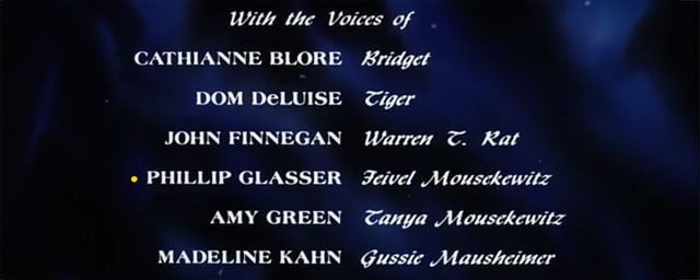 Pour autant, c'est l'orthographe du prénom qui posa ensuite problème. Les génériques d'ouverture et de clôture du film ne présentent d'ailleurs pas la même orthographe. Comme on peut le voir ci-dessus, le générique du début nous présente un FEIVEL et non un FIEVEL, Fievel étant l'orthographe que l'on retrouvera ensuite partout, notamment chez nous dans le titre du film, Fievel et le Nouveau Monde. C'est également l'orthographe que l'on retrouve dans le générique de conclusion.