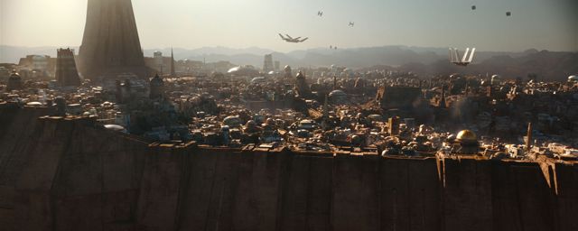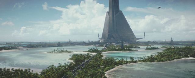 La citadelle de Scarif, théâtre du dernier acte du film, où a lieu la bataille finale, a également été soumise à d’importants changements. Si les équipes ont passé deux mois à créer et développer cet élément de décor, il a fallu tout changer en dernier recours et en quelques heures au moment de tourner. La version de la citadelle du film est donc totalement différente de celle sur laquelle les concept artists ont travaillé pendant plusieurs mois.