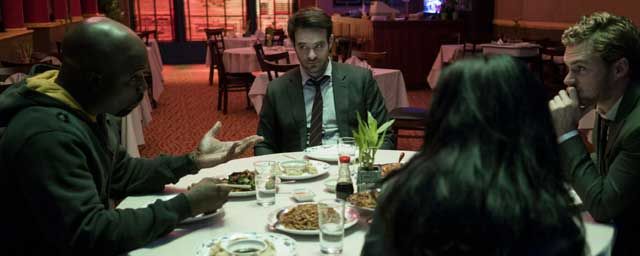 Série chorale oblige, The Defenders mélangera l’univers des quatre super-héros. Pas étonnant donc d’y retrouver les sidekicks de Daredevil (Foggy et Karen), de Jessica Jones (Trish et Malcolm), de Luke Cage (Misty Knight) et d’Iron Fist (Colleen). On notera aussi le retour de Rosario Dawson aka Claire Temple. Après avoir rencontré chacun des héros en solo, l’infirmière devra jouer les "entremetteuses" entre eux.