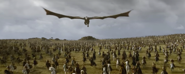 De (très) nombreux soldats Lannister, quelques Dothrakis