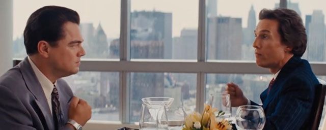 Martin Scorsese ne refuse jamais une belle improvisation de la part de ses acteurs. Le Loup de Wall Street contient d'ailleurs de nombreuses scènes improvisées. Parmi elles, la fameuse scène de déjeuner entre Jordan Belfort (Leonardo DiCaprio) et Mark Hanna (Matthew McConaughey). Un bon moyen pour ce dernier d'introduire Jordan à son monde, à sa culture et à son trio gagnant "pognon - sexe - drogue".