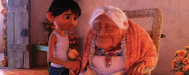 "Que ce soit pour Toy Story 3 ou pour Coco, nous avons trouvé la fin pratiquement au tout début," explique Lee Unkrich. "Nous savions que Toy Story 3 allait se terminer de cette façon, et nous savions que Coco finirait comme ça. De nombreux détails du film ont changé au fur et à mesure que l’histoire évoluait, mais cette scène de Miguel avec Coco, nous l’avons trouvée très tôt. Déjà à l’époque, elle était émouvante, mais nous avons compris qu’elle le serait d’autant plus si nous arrivions à l’amener de la bonne façon. C’était l’un des défis majeurs de ce scénario : comme raconter l’histoire de la manière qui puisse le mieux aboutir à cette fin ?"