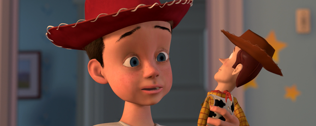 - Andy, dans le premier Toy Story, apparait comme un garçon solitaire. On peut très bien imaginer qu'il est perturbé par le divorce de ses parents et qu'il trouve donc refuge auprès de ses jouets favoris.