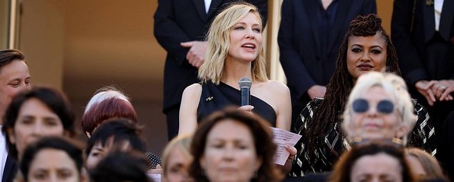 C'est une première sur le tapis rouge cannois : 82 actrices et réalisatrices ont monté ensemble les marches du palais samedi 12 mai, juste avant la projection officielle du film d'Eva Husson, Les Filles du Soleil. La Présidente du Jury Cate Blanchett et la réalisatrice Agnès Varda ont profité de ce moment sous les feux des projecteurs pour délivrer un discours engagé devant les caméras du monde entier.