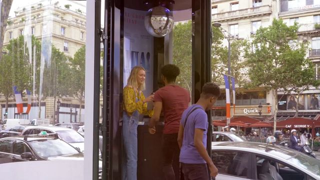 Située sur les Champs Elysées, cette cabine aménagée attend les plus audacieux avec une machine à karaoké : une platine avec les paroles des tubes du plus célèbre des groupes suédois (Dancing Queen, Mamma Mia), un micro et un casque, sans oublier une boule à facettes pour une ambiance disco au top.