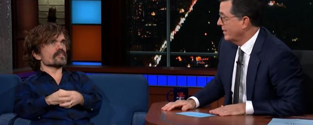 Mercredi soir, le comédien Peter Dinklage était en grande forme dans le Late Show de Stephen Colbert. Au cours de la discussion, ce dernier l'amène à comparer sa Fan bases de Game of Thrones avec celle de l'acteur Jamie Dornan dans Cinquante nuances de Grey. Les deux comédiens ont dernièrement tourné ensemble sur le film My Dinner with Hervé.