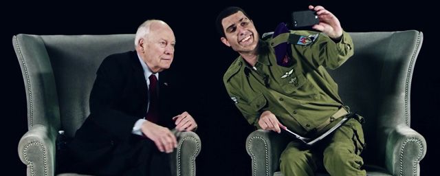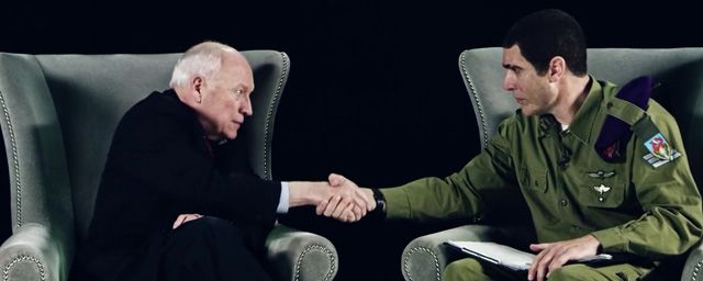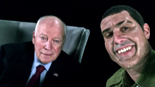 Dans une interview face-caméra intégrée à l'épisode 2 du show, on retrouve ainsi l'un des personnages récurrents et savoureux de Sacha Baron Cohen, le Colonel Erran Morrad, expert en antiterrorisme issu de l'armée israélienne. Durant près de six minutes, il interroge Dick Cheney sur un ton badin et complice sur des sujets comme sa guerre préférée, la stituation en Irak ou les techniques de torture ("interrogatoire forcé" corrigera Dick Cheney). Imperturbable durant l'intégralité de l'entretien, l'homme politique consent même à une "Dick Pic" avec son interlocuteur et à signer un autographe sur le bidon utilisé par Erran Morrad pour ses séances de torture par l'eau (ou waterboarding).