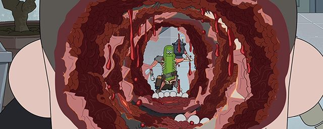 Dans cet épisode concept qui se déroule exclusivement sur terre, Rick se tranforme volontairement en cornichon pour déroger à une séance de thérapie familiale suite au divorce de Beth et Jerry. Méthaphore de sa capacité abyssale à nier les problèmes de sa famille, "Rick-ornichon" refuse de voir l'influence toxique qu'il exerce sur sa fille : celle-ci pardonne tous ses écarts au nom de son génie et échoue à créer un sentiment de sécurité chez ses enfants, Morty et Summer. Dans un monologue épique délivrée par la thérapeute qui reçoit Beth et ces derniers (doublée pour l'occasion par la grande Susan Sarandon), le comportement égoïste et narcissique de Rick est épinglé avec brio. Il en résulte pour Rick un bref moment de lucidité sur ses propres actes, après avoir échappé de peu à la mort face à des rats sanguinaires et une armée de tueurs à gage. Premier Emmy Award remporté par Rick et Morty, "Pickle Rick" relève le double exploit d'être l'un des épisodes les plus sanglants et loufoques de la série (parmi ses références, citons pêle-mêle Iron Man, Die Hard et Breaking Bad), mais aussi le plus profond dans sa manière de traiter des dysfonctionnements familiaux.