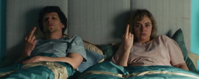 Pas vraiment. Le script est passé par différents stades, les personnages étaient différents dans la première version. Ils étaient beaucoup plus âgés. J'avais une liste d'acteurs et d'actrices, mais lorsque l'on réalise un film indépendant, on nous demande d'avoir des noms plus connus pour que l'on soit financé. Au départ, Mackenzie Davis devait interpréter Gemma. C'était difficile de trouver l'acteur qui allait l'accompagner, car beaucoup de comédiens ne souhaitent pas jouer de personnage secondaire si le rôle principal est tenu par une femme. Elle a ensuite tourné Terminator : Dark Fate, ce qui prenait beaucoup de temps (six mois, NDLR), alors on a dû chercher quelqu'un d'autre. Imogen Poots était dans ma liste dès le début. Nous nous sommes rencontrés, elle a lu le scénario et l'a beaucoup aimé. Pour jouer Tom, nous avions établi une nouvelle liste dans laquelle se trouvait Jesse Eisenberg. Il représente l’archétype du mec normal. C'est justement ce qu'on recherchait. On ne voulait pas d'un top model Gilette (rires). Imogen Poots avait déjà travaillé avec lui, alors elle lui a envoyé le scénario sur son portable et c'est comme ça que l'aventure s'est lancée.