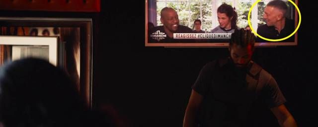 Sans doute est-ce pour cela - en grande partie, du moins - que Ladj Ly a souhaité glisser un clin d'oeil très discret au comédien dans son propre film. En effet, à 54 minutes et 28 secondes très exactement, alors que les trois personnages principaux rendent visite au dénommé La Pince pour remettre la main sur un drone, l'un des écrans de l'établissement dans lequel ils se rendent diffuse les images de l'émission Clique Dimanche présentée par Mouloud Achour. En plateau, on peut ainsi voir Vincent Cassel, venu présenter Le Monde est à toi de Romain Gavras.