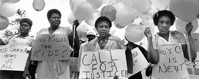 Au total, vingt-quatre enfants ou adolescents et six adultes sont enlevés et assassinés entre le mois de juillet 1979 et le mois de mai 81. À chaque fois, les victimes sont étouffées, étranglées ou poignardées et un grand nombre d'entre elles sont retrouvées dans la rivière Chattahoochee, qui traverse la ville. Une surveillance s'organise alors sur un pont.