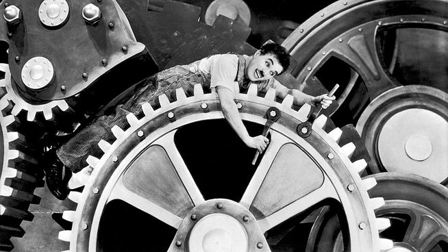 Charlot est ouvrier dans une immense usine. Il resserre quotidiennement des boulons. Mais les machines, le travail à la chaîne le rendent malade, il abandonne son poste et recueille une orpheline… Le génie du film est de faire passer une virulente critique de l'automatisation des usines (nous sommes à l’époque du taylorisme et du fordisme) à travers le rire, parfois jaune, et des chorégraphies millimétrées opposant Charlot aux machines. Le tout agrémenté d’une formidable histoire d’amour. A noter que Les Temps modernes était d’abord écrit pour être parlant et contenir des dialogues, mais Chaplin y renoncera finalement pour pouvoir y reprendre son personnage de Charlot, qui a toujours été muet. Le film possède cependant des passages vocaux, surtout venant des machines, accentuant ainsi leur toute puissance. Un classique du cinéma et un bijou intemporel de plus dans la filmographie de son réalisateur.