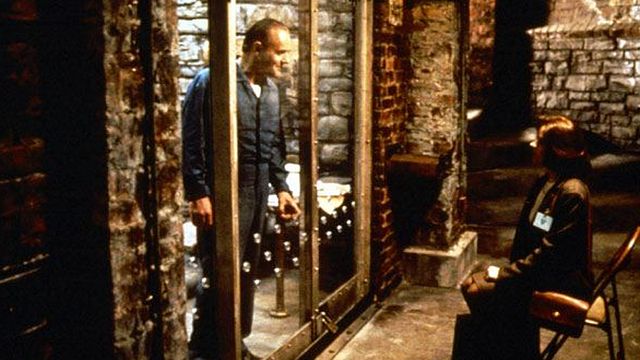 Dans Le Silence des agneaux, Hannibal Lecter (Anthony Hopkins) nous est introduit par l'agent Clarice Starling (Jodie Foster), qui vient lui rendre une petite visite...Contrairement à ses codétenus, sales, qui végètent dans un environnement repoussant, Lecter est calme, très soigné, se tient stoïque au centre de sa cellule. mais il a déjà ce regard hypnotique, pénétrant et glaçant, qu'on découvre encore plus lorsqu'il demande à l'agent Starling de lui montrer sa carte du FBI. Supérieurement intelligent, il détecte aussitôt qu'on lui envoie une élève stagiaire...