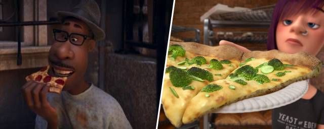 - Dans Vice Versa, Riley semble particulièrement aimer les pizzas (exceptées celles qui contiennent des brocolis, bien entendu). Or, dans Soul, la toute première sensation qui donne à 22 le goût de vivre est la dégustation d'une délicieuse part de pizza, dans les rues de New York.