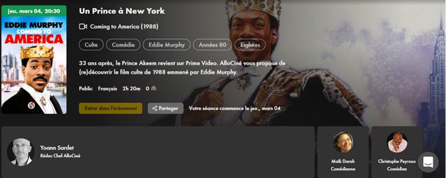 Une séance en ligne, en direct et tous ensemble (ou cowatch) autour du film Un Prince à New York, comédie culte des années 80 emmenée par Eddie Murphy et Arsenio Hall.