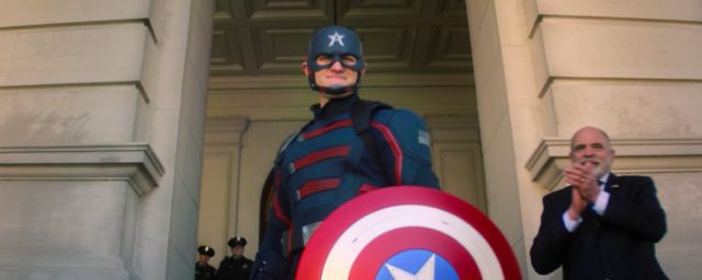 Les dernières minutes du premier épisode de la série montre un Sam Wilson dépité face à son poste de télévision alors que les autorités annoncent l'avènement d'un nouveau Captain America. Ce dernier arbore le bouclier que Steve avait légué à Sam, qui l'avait ensuite remis aux autorités pour mettre dans un musée.