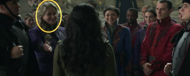 L’écrivaine porte ici un Kefta violet avec des broderies dorées, aux couleurs Durast. Un choix loin d'être anodin puisque ce sont des Fabrikators, et qu’elle est la créatrice de cet univers. Elle a partagé sur Instagram les coulisses de son caméo et elle ne cache pas son émotion face aux acteurs et aux décors :